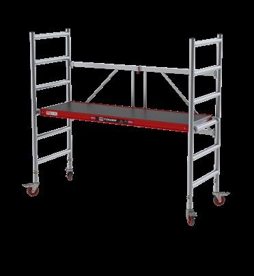 > Standaard werkhoogte is 3m, kan doorgebouwd worden tot een rolsteiger met werkhoogte 7,80m