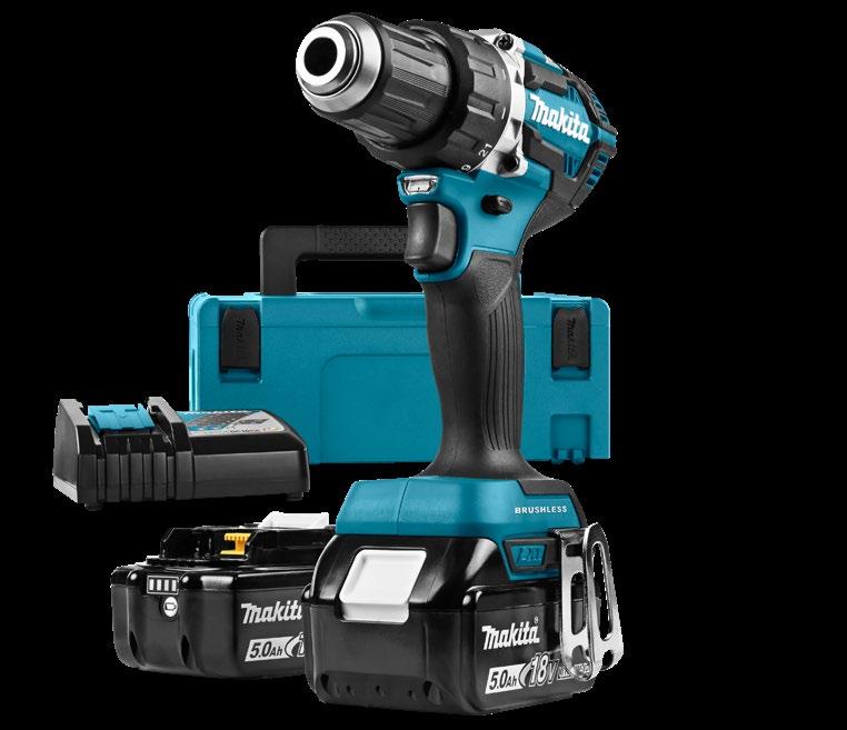 2022 // WEEK 47 T/M 52 NU €62,50 PER STUK MAKITA DDF484RTJ SCHROEF-/BOORMACHINE Snelle 18V schroef-/boormachine voor de allround klussen. Geleverd in een Mbox met twee 5.0 Ah accu’s en snellader. ARTIKELNUMMER 1729043 MAKITA 18V LXT ACCU Zware 18V LXT accu met 5.0 Ah aan capaciteit. Past op meer dan 250 verschillende machines waaronder ook tuin- en parkmachines. ARTIKELNUMMER 990787