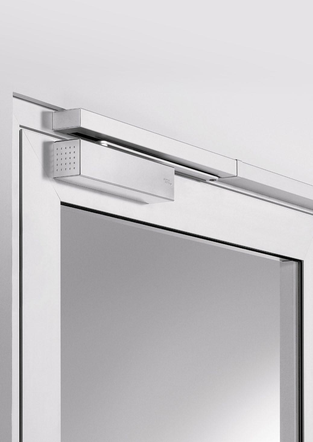 Een deurautomaat sluit op netstroom en heeft dankzij zijn eigen motor de kracht om de deur zelf dicht te trekken.