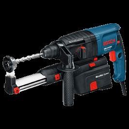Compacte 710W boorhamer met geïntegreerde stofafzuigunit voor stofvrij boren.