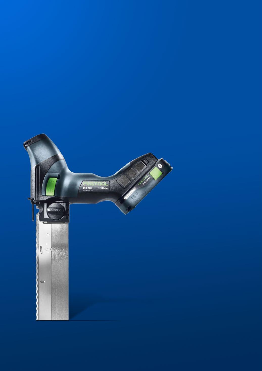 Dit is de Festool ISC 240. Een isolatiezaagmachine die moeiteloos door alle harde en zachte isolatiematerialen zaagt, tot maar liefst 350 mm dik. Met de geleiderail en hoekaanslag werk je bovendien extreem nauwkeurig. En je gebruikt hem net zo makkelijk uit de losse pols, want hij is kabelloos en licht. De machine wordt geleverd met een zaagbladset voor de meest voorkomende isolatiematerialen.