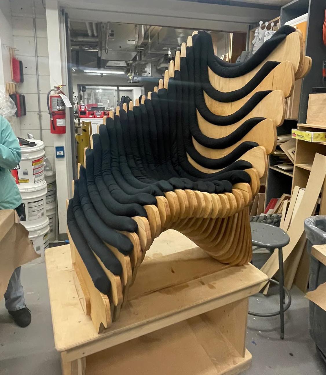 Fabrication of a unique chair design in which I was able to learn the process and gain experience on the manufacturing of a full scale design, working with various machines and tools such as the CNC machine, bandsaw, sanding machine, etc.