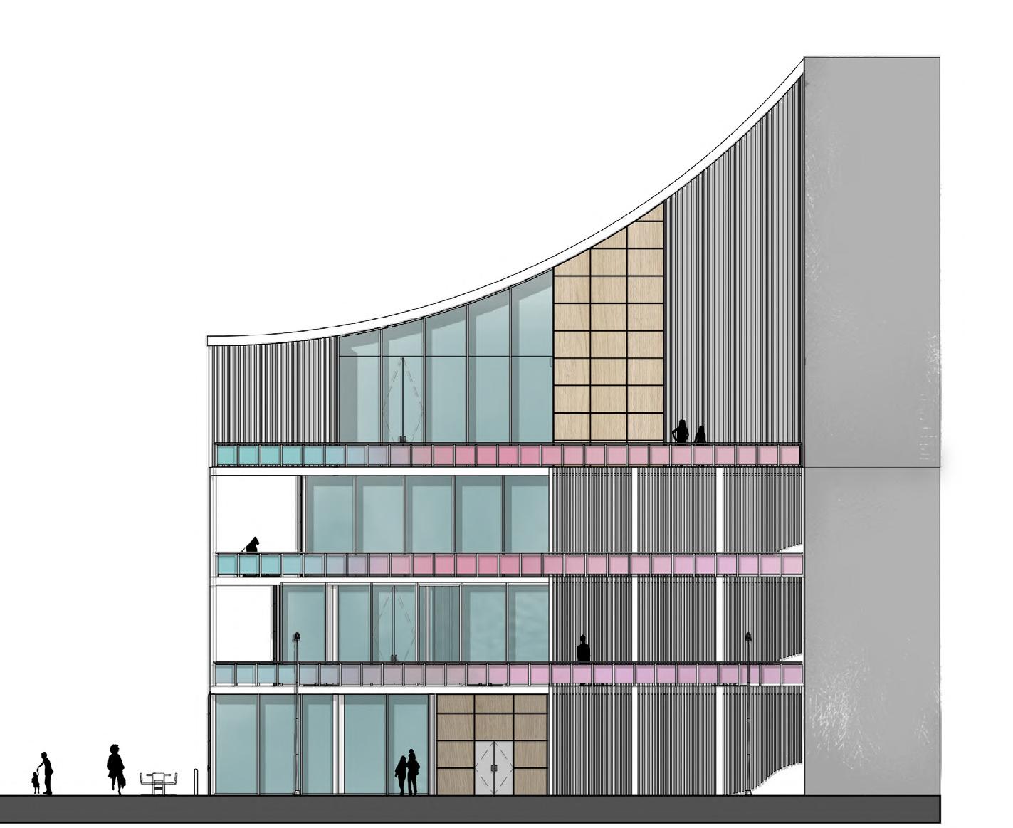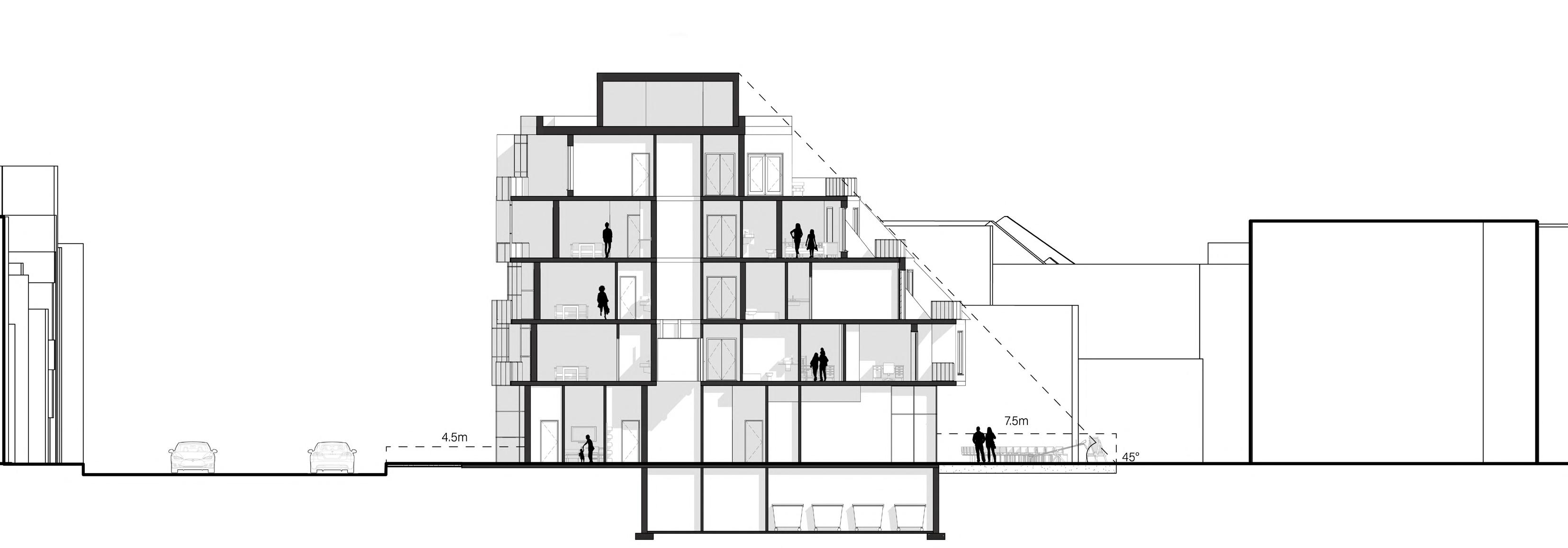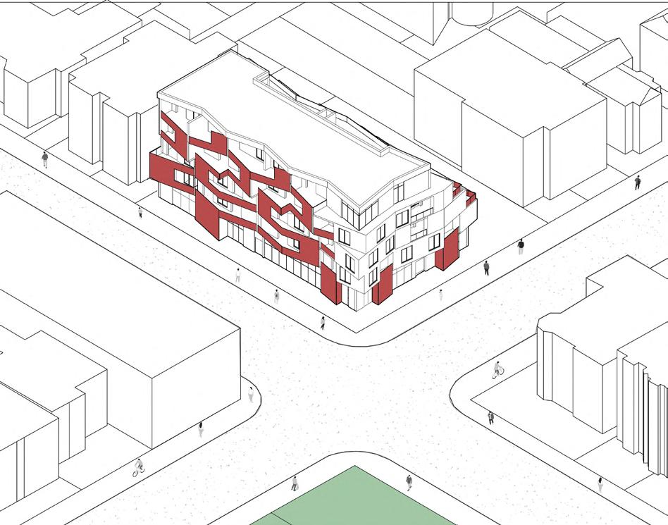 The project brief centers on erecting a mixed-use mid-rise residential building. The proposed design adheres to local zoning regulations and uses these setbacks to help in the creation of its form.