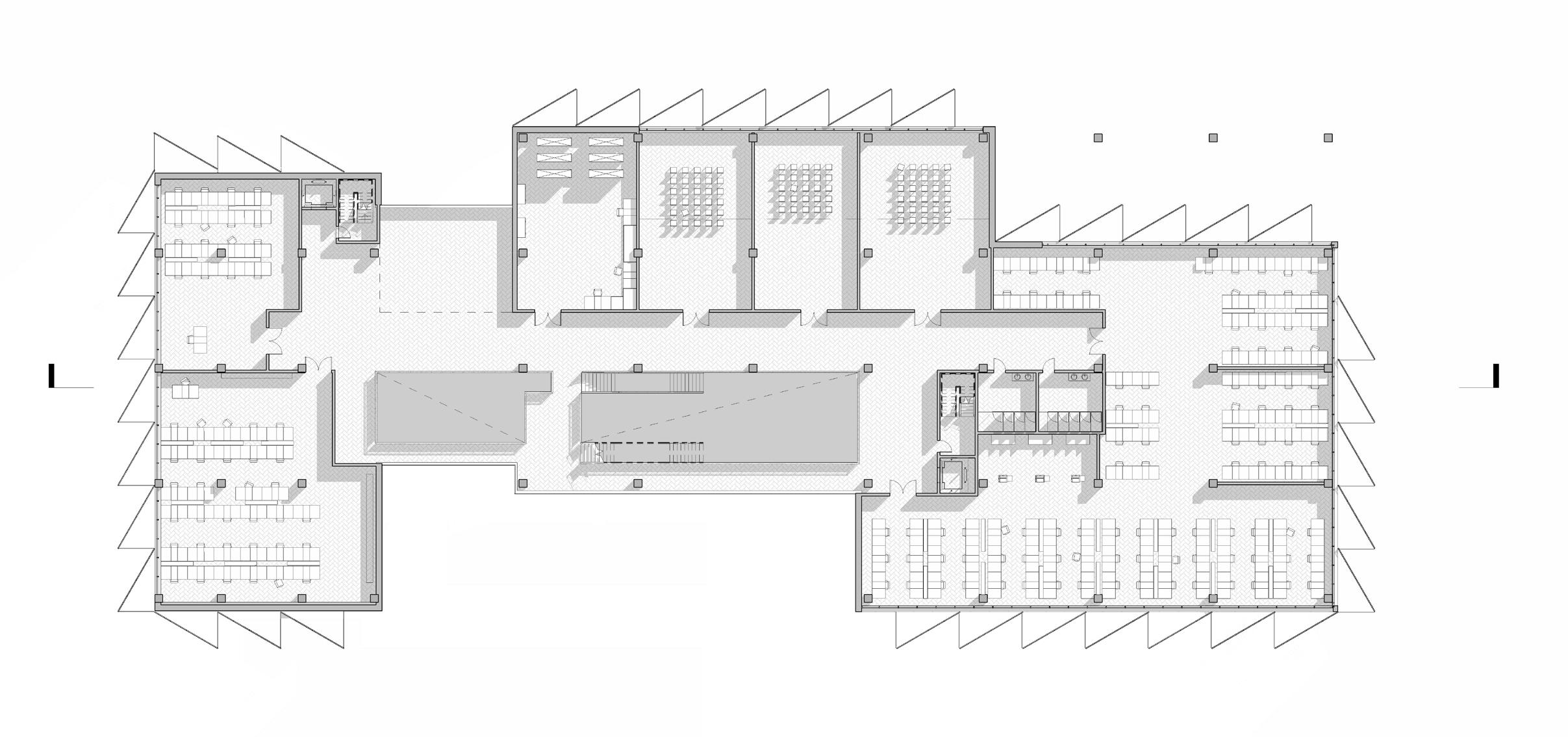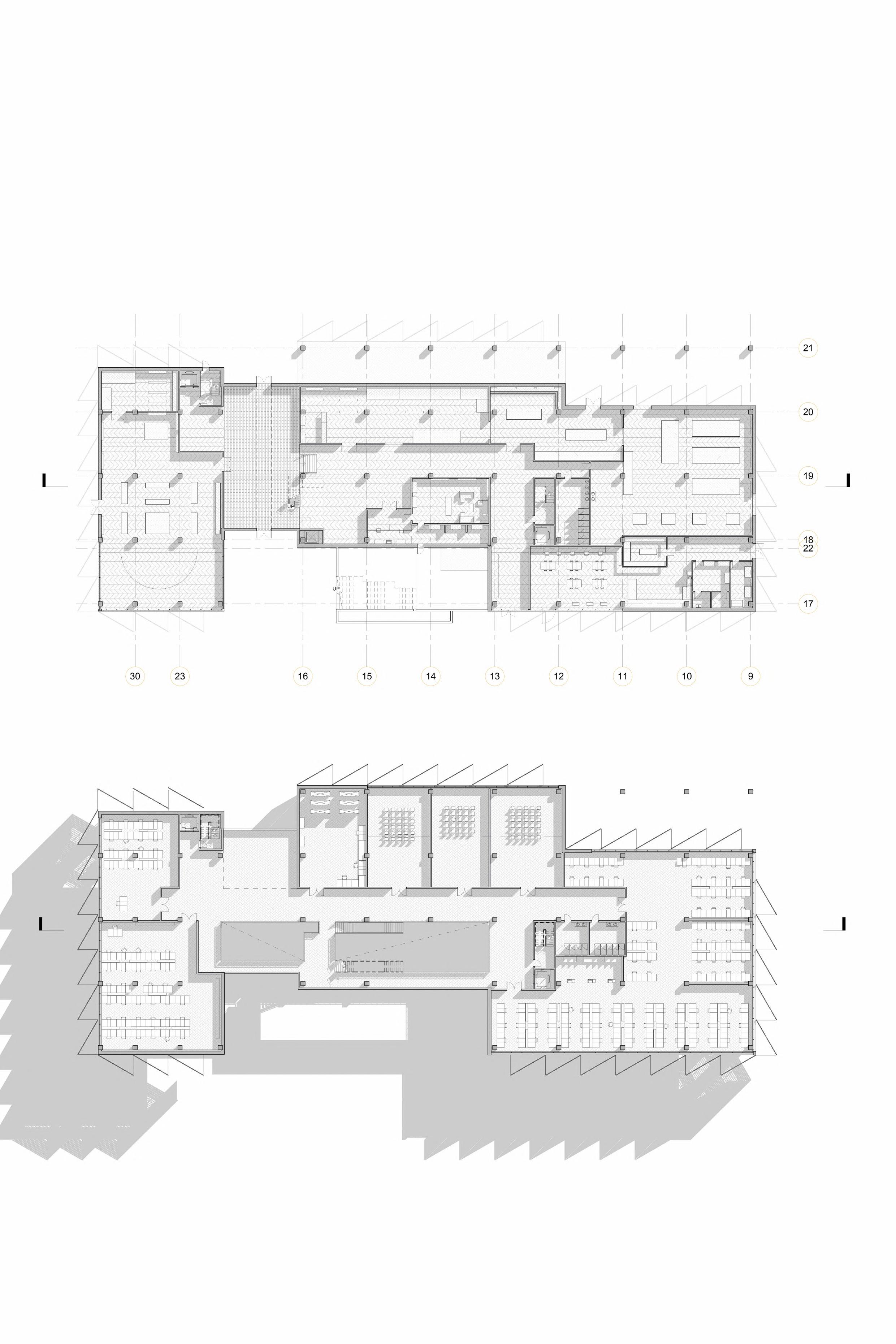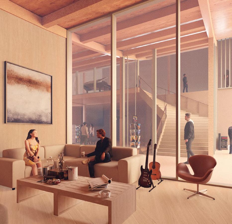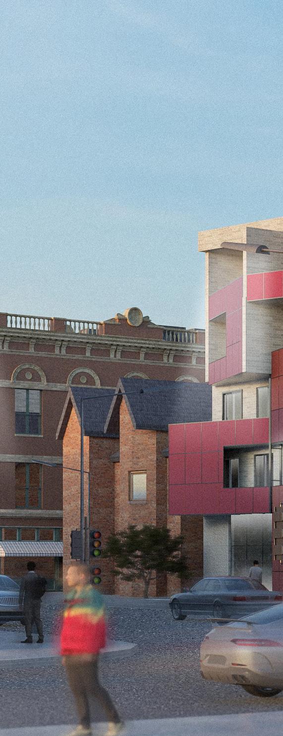 This multipurpose library was designed with a focus on its site and integration into the community that surrounds it. The form follows its surrounding context bridging the building next to it and following its flow across the street. Furthermore, the setbacks around its various elevations help connect the green spaces around the site and provides inclusion of additional programming.