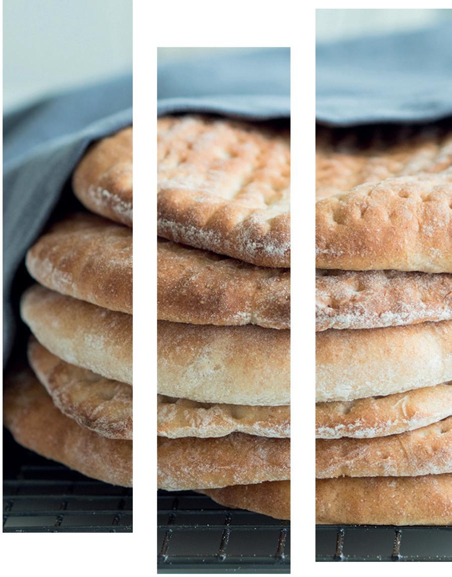 stenugnsbakas. Resultatet blir ett fylligt bröd med krispig skorpa. En brödsort som passar lika bra till grunden i en lunchmacka eller som ett perfekt tillbehör på tapasbordet. Även gott att toppa med tomatsås, mozzarella och riven parmesanost och därefter värma i ungen i 5–8 minuter på ca 230°. Toppa med några skivor salami eller parmaskinka, piffa med basilikablad och ringla över en riktigt fin olivolja. Voilà!