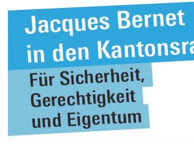 Als Kantonsratskandidat steht Jacques Bernet ein für diegegenseitige Akzeptanz und friedliche Koexistenz aller Menschen. Er verteidigt die freiheitlichen Werte und befürworteteine liberale verhältnismässigeWirtschaftspolitik mit Selbstverantwortung der Bürgerund Bürgerinnen. Im Vordergrund stehen für ihn der Schutz unserer freiheitlichen politischen, sozialenund persönlichen Rechte, und nicht zuletzt das Grundrecht auf Eigentum. Für denfreiheitlichen und liberalen Staat sind RechtssicherheitundGerechtigkeitnotwendig.
