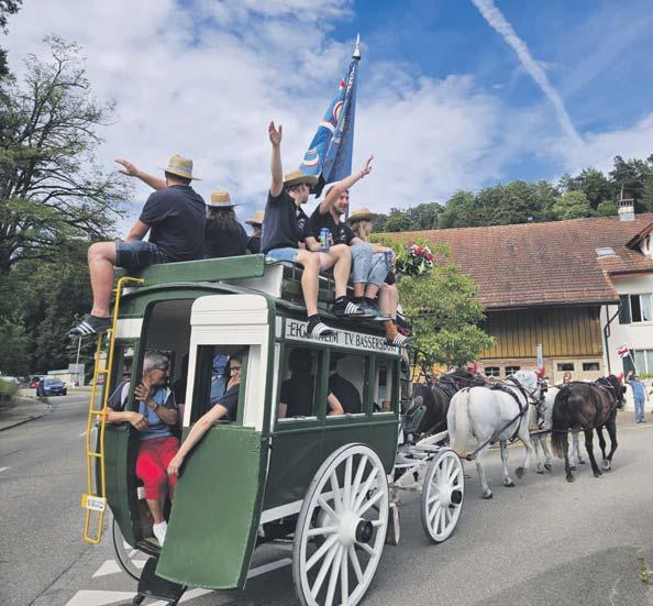 Für die Mitglieder des Turnvereins Bassersdorf ist die diesjährige Wettkampfsaison bereits wieder zu Ende. Traditionell wurde dieser Abschluss mit der Heimreise im Omnibus, einer Vierspänner-Kutsche, gebührend gefeiert. Vom Turnfest in Mönchaltorf bis nach Bassersdorf rollte das «Eigenheim des TV Bassersdorf» aus dem Jahr 1882 mit hölzernen Rädern über Feldwege und Strassen. Die Fahrt sei jedes Jahr erneut ein Erlebnis, erzählt Oberturnerin Liliane Haefeli. Bei der Sagi wurde die Turnerfamilie schliesslich von der Männerriege, der Frauenriege, den Veteranen, dem Basi-Fit, und von Angehörigen und Freunden empfangen und ein vielfältiger Apero lud zum Schlemmen ein. Obwohl die Ergebnisse noch Raum für Verbesserungen lassen, sei es dennoch eine gelungene Saison gewesen und die wohlverdiente Sommerpause kann nun starten. (nc)