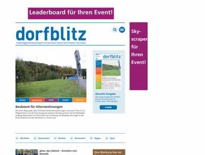 E-Mail inserate@dorfblitz.ch Bürozeiten Montag 8 bis 16 Uhr Konto CH94 3000 0001 8704 2299 8