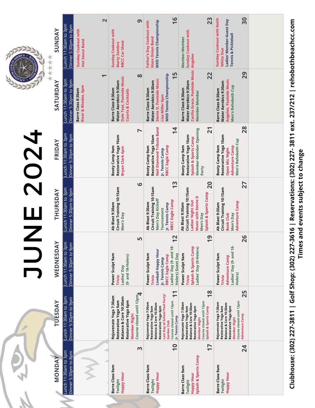 In addition to the monthly menu changes, we will have a Happy Hour Monday Menu from 4pm-8pm every Monday starting in June! Since this is new for the 2024 season, we hope to see Members enjoying our favorite happy hour bites such as guacamole and chips, buffalo cauliflower, RBCC cheesesteak, chicken piccata and more.
