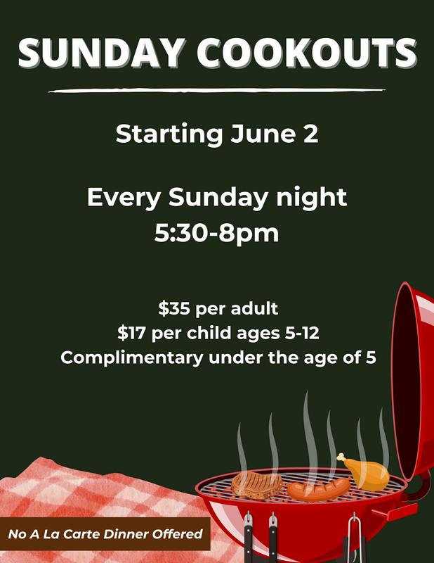 Bar Bites Menu: 3pm to 5:30pm Sunday Cookout: 5:30pm - 8pm