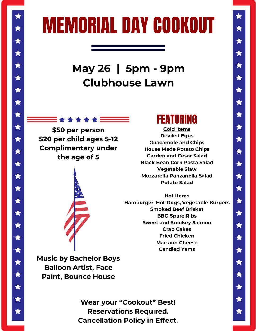 The Sunday Cookout schedule begins on Sunday the 26th of Memorial Day weekend. Spaska has chosen the “Bachelor Boys” to play tunes while Andra and Gina will have the Club decorated for a fun evening. Last year’s Memorial Day Cookout drew a huge crowd and we hope to see even more Members this year. The culinary team has a new “pig roaster” that we will roll out for cookouts in June so stay tuned for a whole roasted pig station this summer as well as whole chickens and baby back ribs that can be slow cooked in our new “toy.”
