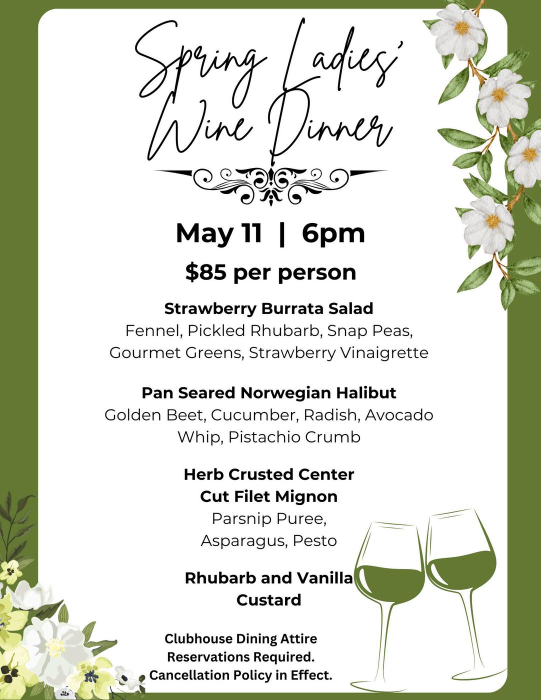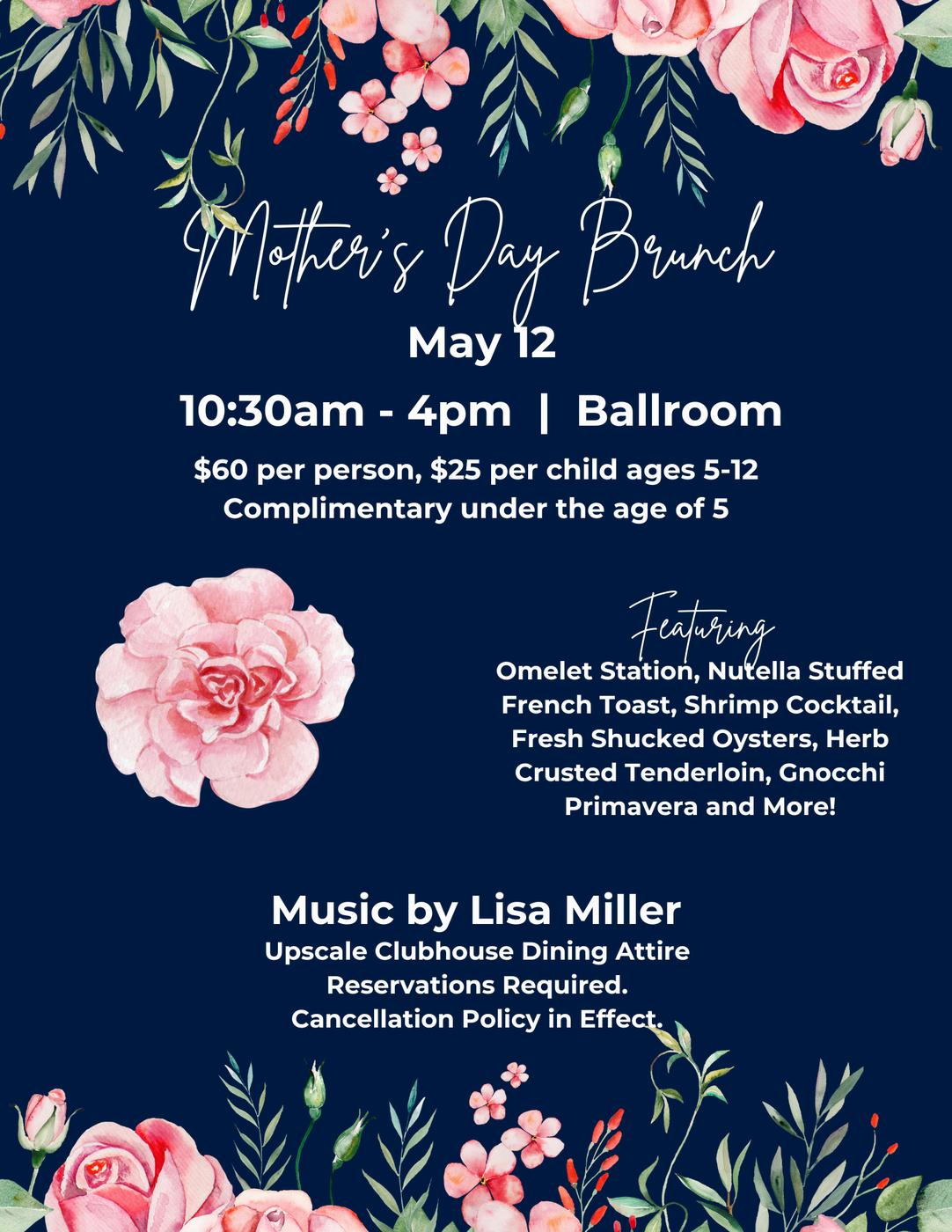 The Spring Ladies Wine Dinner will take place on Saturday, May 11. Cosi has selected great wines to complement Chef Carolyn’s outstanding menu. Mother’s Day Brunch
