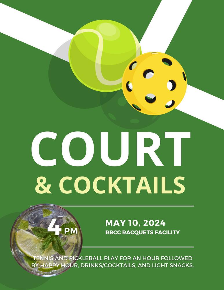 Our official Kick off Party will be May 25 at 10am! There will be tennis and pickleball play, lite food available and always great opportunities to meet and connect with your fellow RBCC Members. We will also have our Tennis clothing liquidation sale for this event. Arrive early to get the first pick of what remains!