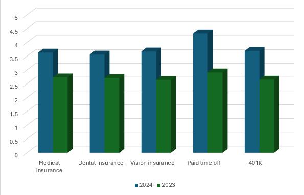 Overall, the questions scored either the same or better in 2024 than they did in 2023 and the majority of responses are very positive