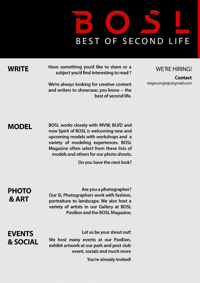 Bosl edition 4 C O N T E N T 11 45 THE FUTURE? 11 TIME TRAVEL 31 PREHISTORICA 45 28LA & MS. GATZ 65 BOSL ARTS 73 BOSL FASHION TREND 99 31