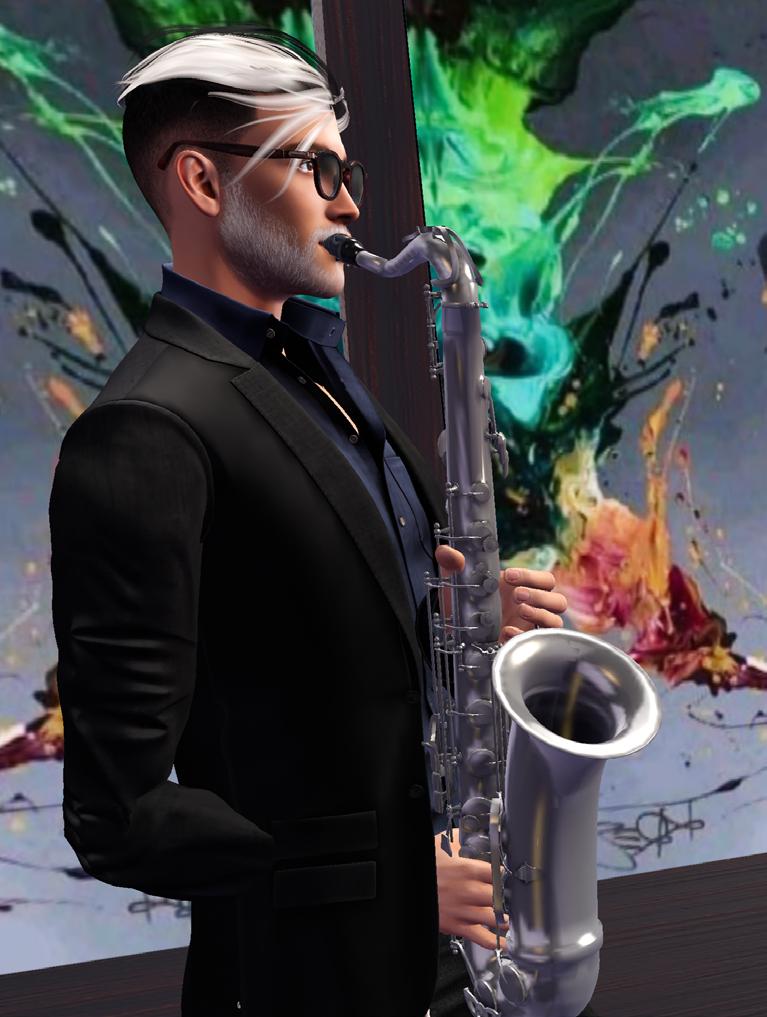 The Glasgow, Scotland native does not disappoint as he performs live, wielding a tenor alto saxophone and commanding the stage at the Second Life Endowment for the Arts (SLEA). Notes of distinction waft through the arena much to the enjoyment of fans new and old.