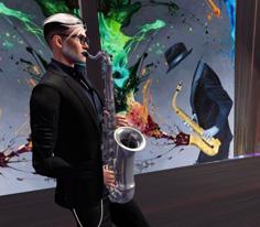 The Glasgow, Scotland native does not disappoint as he performs live, wielding a tenor alto saxophone and commanding the stage at the Second Life Endowment for the Arts (SLEA). Notes of distinction waft through the arena much to the enjoyment of fans new and old.