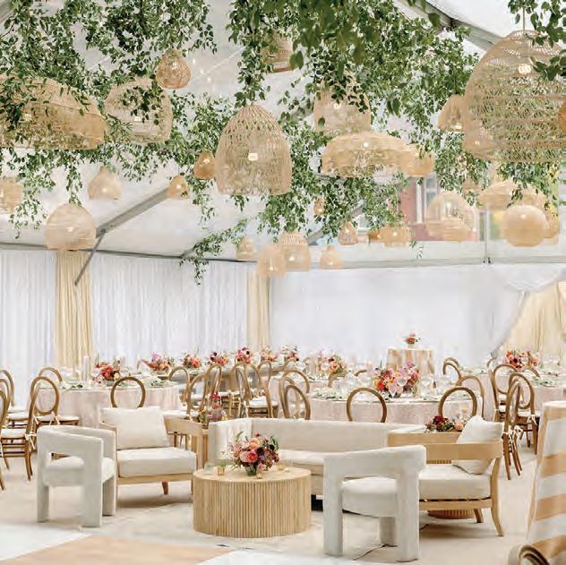 Kaira describes the brand as “thoughtful, seamless, elevated,” with an aesthetic that’s “warm, modern, and intentional.” You see it in the collection, which is edited rather than endless: statement dining chairs that add instant architecture to a tablescape; curated lounge groupings in soft neutrals and light woods; bars that act as functional focal points; tabletop décor and styling pieces that finish the look; backdrops and photo booths that create moments; and specialty installations that bring a little drama (hello, lanterns and disco). The overall effect is not about doing the most for the sake of it. It’s about selecting the right pieces so the entire day reads polished—without ever feeling precious.