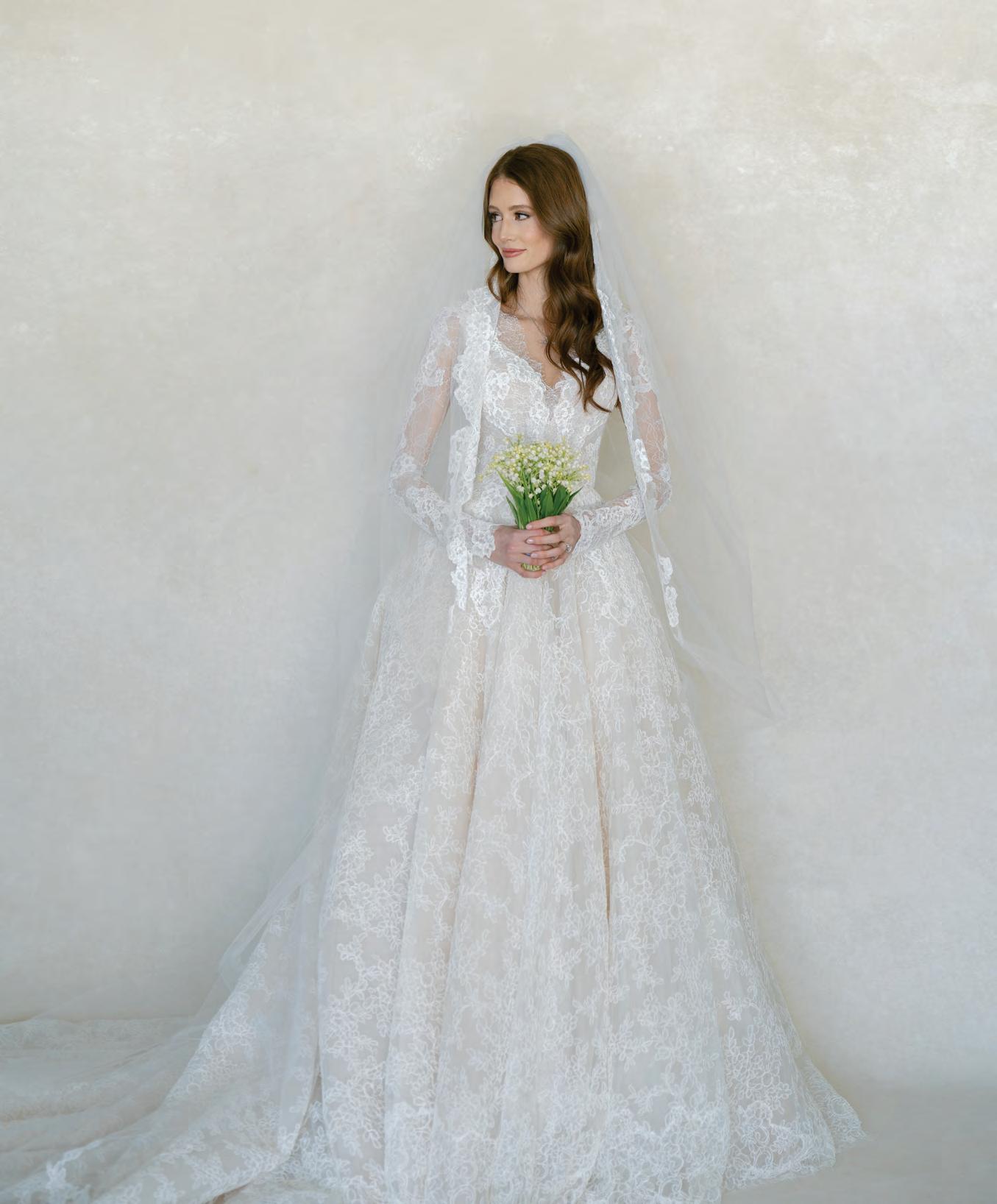 ON THE BRIDE: Floure “Daphne” Gown, $10,800; Sara Gabriel “Honey” Veil, $1,475