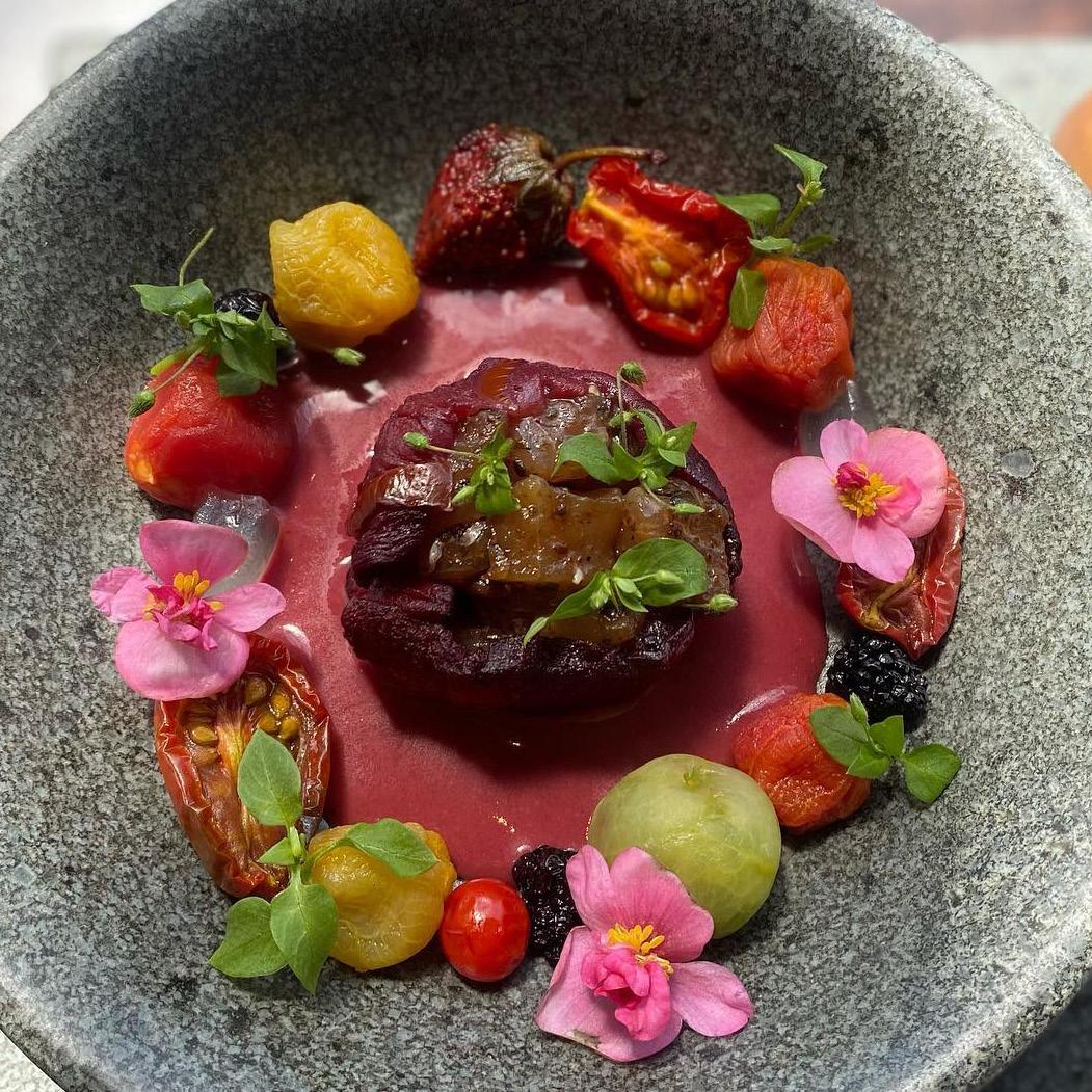 LOCAL JONES Mas Gabinele grenache gris (our Sommelier Greg Huertas selected this to signify the change in seasons. Aromas of yuzu, citron and finished with verbena blossom.) The beet hummus. Lemon pepper chicken. Mile High chocolate cake (21 layers of chocolate love).