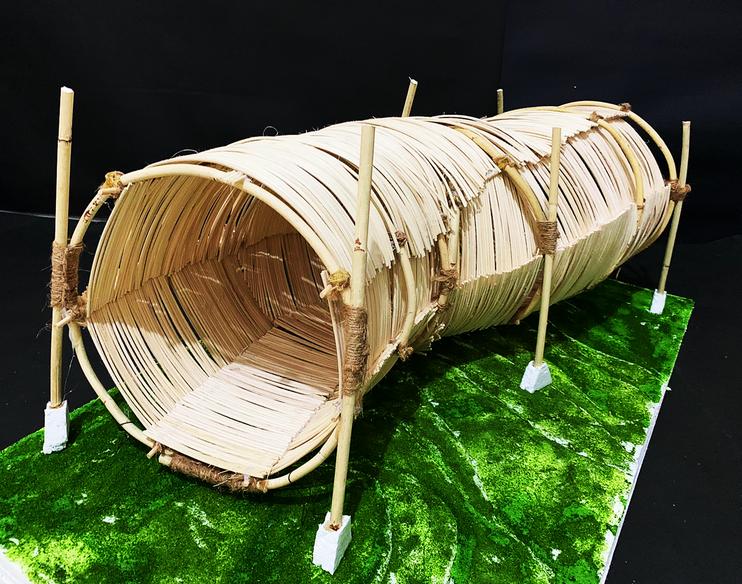 saya mem g pada desain bangunan atang penguat lampu untuk pertumbuhan bulunya, selain untuk daya tarik rangka ekor Ekor panjang juga berfungsi sebagai penyeimbang pada burung merak, pada rangka bulu ekornya. Rangka ekor merak diaplikasikan sebagai struktur atap dan kursi untuk shelter sederhana ini, seperti tampak pada gambar. Dengan batang yang ditanam ke dalam tanah dengan sambungan tetap seperti kerangka ekor burung merak yang ditancapkan ke daging burung merak