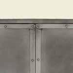 Console Table 28”H x 56”W x 20”D Aluminum Patchwork Exposed Steel Screws 57005001 Filing Cabinet 32”H x 18”W x 18”D Aluminum Patchwork Exposed Steel Screws 57007005 25 Cocktail Table 18”H x 52”W x 26”D Aluminum Patchwork Exposed Steel Screws 57003006 2 Shelf Cocktail Table 18”H x 52”W x 26”D Aluminum Patchwork Exposed Steel Screws 57003005 24