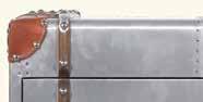 Tall Cabinet with Leather Pulls 71”H x 32”W x 18”D Aluminum Patchwork Decorative Leather Exposed Steel Screws 57001001 33 4 Drawer Chest 50”H x 42”W x 22”D Aluminum Patchwork Decorative Leather Top Opens For Extra Storage Exposed Steel Screws 57015001 32