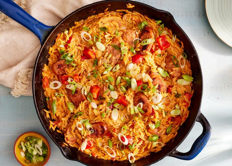 4. Add sausage and cook until warmed through and golden, about 2 minutes.