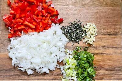 2. Add onion and pepper, cook until soft, about 5 minutes
