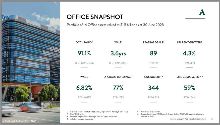 Abacus Group’s $1 5 billion, 14-location office holdings represent 69% of their $2.1 billion property portfolio by value and 78% by asset count. Despite demonstrably strong short-term growth, the lack of diversification amplifies structural headwinds in the office sector, particularly regarding flexible working environments.