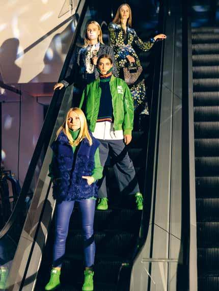 Stairway to fashion. Die Models nutzen die Rolltreppen für den perfekten Auftritt.