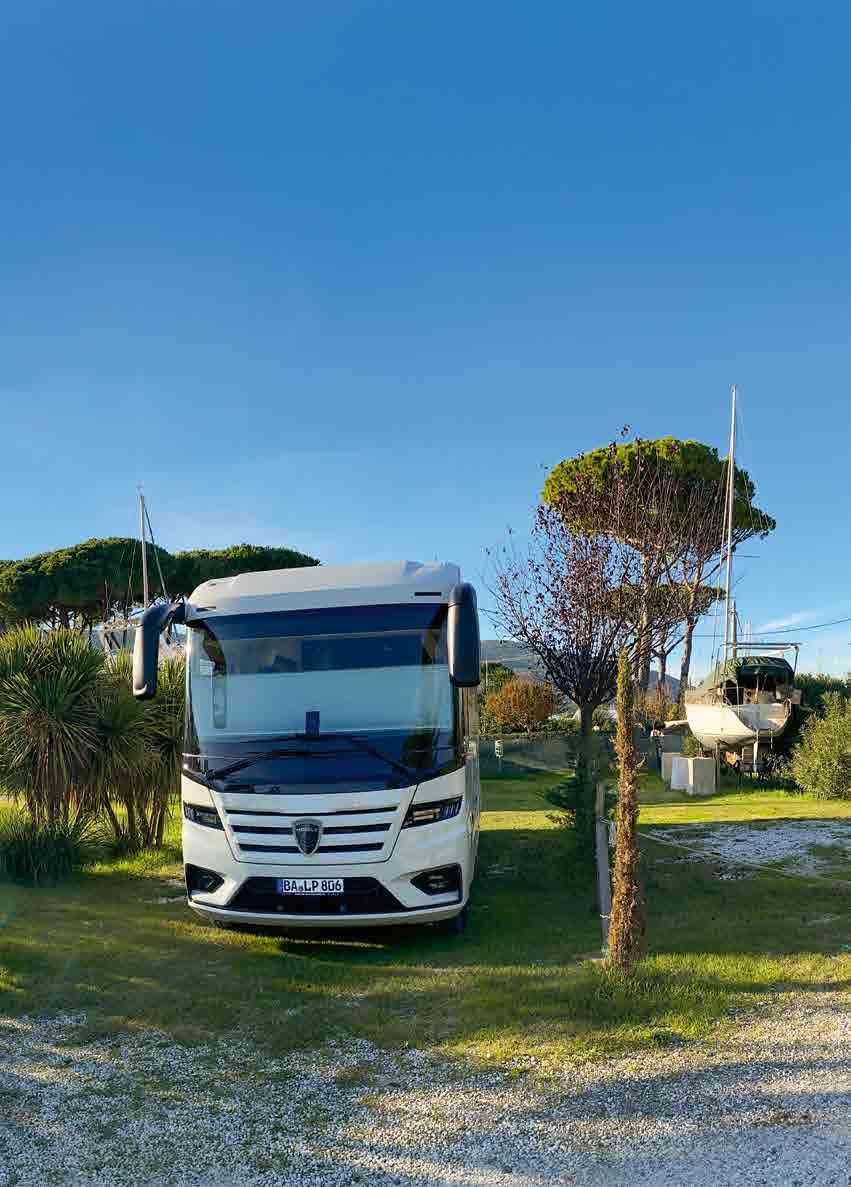 Gleich hinter der Cinque Terre und La Spezia liegt am Flussufer der Magra der kleine Stellplatz im Yachthafen von Simone Bertucci. Mit schönem Blick auf die Villen am anderen Ufer kann man sich in der gepflegten Anlage mit Mini-Pool und Pergola im Yachtstyle sehr wohl fühlen. Von hier sind es nur 3 km zu den großen Sandstränden, die sich bis nach Marina di Carrara und Forte dei Marmi und dann weiter in die Toskana ziehen. Nur 250 m vom Platz entfernt befindet sich das erstklassige Fischrestaurant von Ferruccio Buono – der Name ist Programm. Hier gibt es den aller-frischesten Fisch im schönen Gourmet-Restaurant (www.lofficinadelpesce.it). Der Stellplatz und das Restaurant haben ganzjährig geöffnet. Zur Platzreservierung einfach Simone anrufen, er spricht gut englisch. GPS: 44.060001, 9.977175 · I-Ameglia (SP), Via Poggio Scafa 4 · Tel: +39 393 150 4337 Facebook: www.facebook.com/nauticalameridiana
