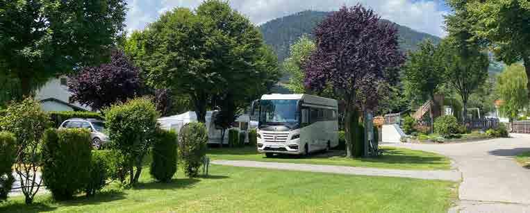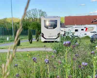 2. Der idyllische Stellplatz bietet auch XXL-Mobilen Platz. Mit einem traumhaften Blick auf die Weinberge des Maustals lässt sich hier eine ruhige Nacht genießen.