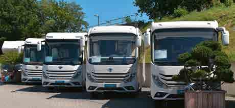 Neben einer großen Modell-Auswahl an Luxus-Mobilen von Concorde und MORELO werden auch die PremiumFahrzeuge von Carthago angeboten.