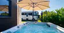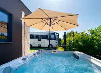 Der exklusive Glamping-Park liegt in nur 15 Gehminuten zur historischen Altstadt von Labin. Die Lage in den grünen Hügeln ist ideal, um die landschaftliche Schönheit zu genießen. Nahegelegene Strände wie Girandella, Lanterna oder Maslinica sind schnell erreichbar. Die Umgebung lädt mit Wanderwegen ein und auch die Sehenswürdigkeiten wie der Naturpark Učka oder das berühmte Amphitheater in Pula sind gut erreichbar. Es gibt 7 großzügige Stellplätze mit 100 bis 120 qm, die mit Strom-, Wasser- und Abwasseranschlüssen ausgestattet sind. Im Resort gibt es drei moderne, beheizte Sanitäreinheiten. Darüber hinaus 8 voll ausgestattete Glamping-Zelte, einige mit privaten Pools oder Whirlpools. Ein Highlight ist der zentrale 100 qm große Swimmingpool mit Sonnendeck. Das Vento Restaurant & Bar bietet ein authentisches istrisches Frühstück sowie eine Auswahl an istrischen Speisen und Weinen. Im Spa-Bereich stehen verschiedene Behandlungen zur Verfügung. Aktivurlauber können E-Scooter und Fahrräder mieten, um die Umgebung zu erkunden. Der kleine Floria Glamping Garden bietet eine perfekte Mischung aus Natur, Erholung und stilvollem Glamping. GPS: 45.075781, 14.126793 · HR-52220 Labin, Gondolići 2a · Telefon: +385911404014 · www.floria-glamping.com