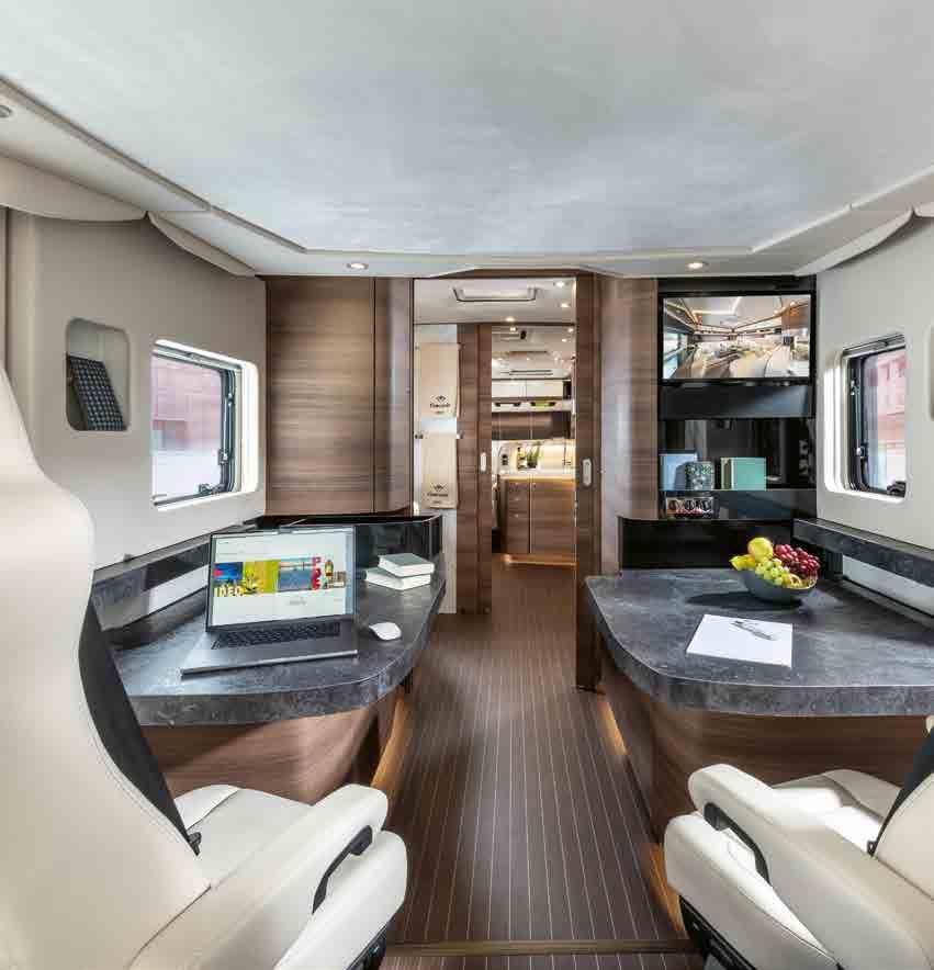 Die beliebte, um 90 Grad gedrehte Concorde-Rundsitzgruppe im Heck, hält nun auch Einzug in diese Baureihe und bietet fantastische Eindrücke und Ausblicke. Ergonomisch optimierte Sitz- und Wohnmöbel schaffen eine einzigartige Wohnatmosphäre.