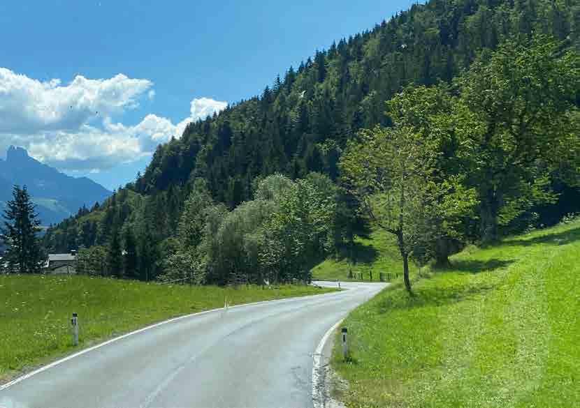 Vom Wolfgangsee geht es über den Hallstädter See hinein in die Berge Richtung Ramsau. Die Straße schlängelt sich immer weiter bergan begleitet vom kristallklaren Rußbach und entlang der imposanten Felswände eröffnen sich immer wieder atemberaubende Ausblicke auf das majestätische Gebirgspanorama des Dachsteinmassivs, das uns mit seinen schroffen Felsen und tiefen Schluchten fasziniert. Wir machen eine ausgedehnte Pause in St. Martin am Tennengebirge – mitten im Ort gibt es einen