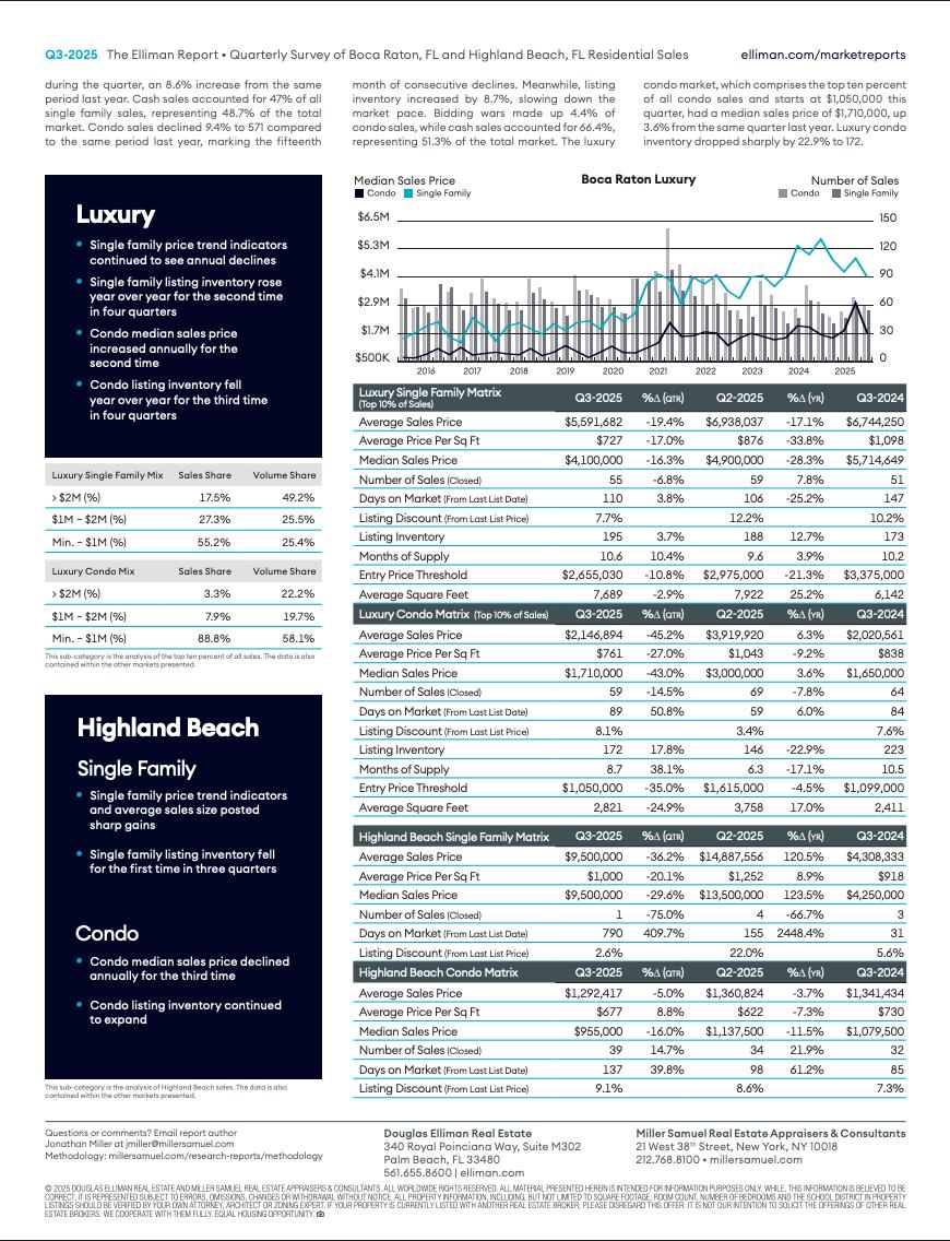 WELCOME TO DOUGLAS ELLIMAN’S Q2 2025 MARKET REPORT FOR FLORIDA I’M PLEASED TO PRESENT OUR EXCLUSIVE SECOND QUARTER 2025 DOUGLAS ELLIMAN REPORTS, OFFERING THE MOST CURRENT DATA AND INSIGHT ACROSS FLORIDA’S KEY MARKETS. ACROSS THE STATE, CASH CONTINUES TO LEAD HIGH-VALUE PURCHASES AS BUYERS NAVIGATE ELEVATED INTEREST RATES WITH CONFIDENCE. WHILE LISTING INVENTORY HAS EXPANDED IN SELECT AREAS, IT REMAINS BELOW LONG-TERM AVERAGES, SUSTAINING PRICING STRENGTH PARTICULARLY IN SOUGHT-AFTER LUXURY ENCLAVES MANY MARKETS EXPERIENCED RECORD-SETTING PRICE TRENDS, EVEN AS SALES VOLUMES ADJUSTED YEAR-OVER-YEAR ELEVATED RATES AND MACROECONOMIC RESILIENCE CONTINUE TO SHAPE BUYER BEHAVIOR COMPETITIVE BIDDING REMAINS ACTIVE, THOUGH INCREASED SUPPLY IS SOFTENING URGENCY IN SOME SEGMENTS AT DOUGLAS ELLIMAN, WE BELIEVE INFORMATION IS POWER ESPECIALLY IN A DYNAMIC MARKET. THESE QUARTERLY REPORTS ARE DESIGNED TO GIVE YOU THE CLARITY, CONFIDENCE, AND STRATEGIC EDGE NEEDED TO NAVIGATE TODAY’S LANDSCAPE. FOR DETAILED INSIGHTS OR TO EXPLORE OPPORTUNITIES IN NEW DEVELOPMENT AND LUXURY REAL ESTATE, I INVITE YOU TO CONNECT DIRECTLY.