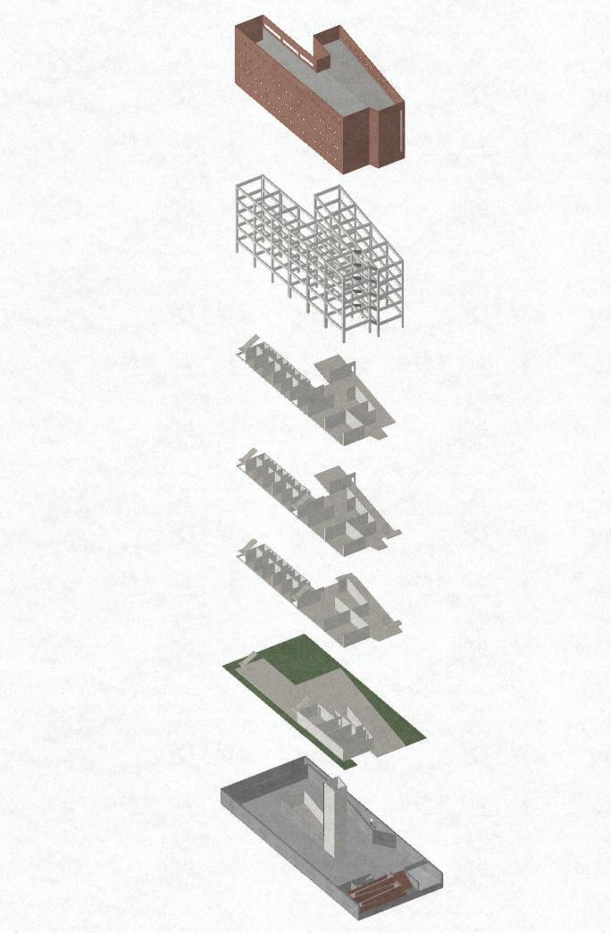 Roofing 3rd Floor 2nd Floor 2nd Floor Exterior Skin & Beam Structure Concrete Slab Roof Classroom Silent Study Space Performance Space Frosted Glass Exterior 0,3 m Shear Wall 15cm Thick Collumn 70 cm Cylinder Collumn Workshop/ Event Space Silent Study Space Classroom Study Space Performance Space noise level 11