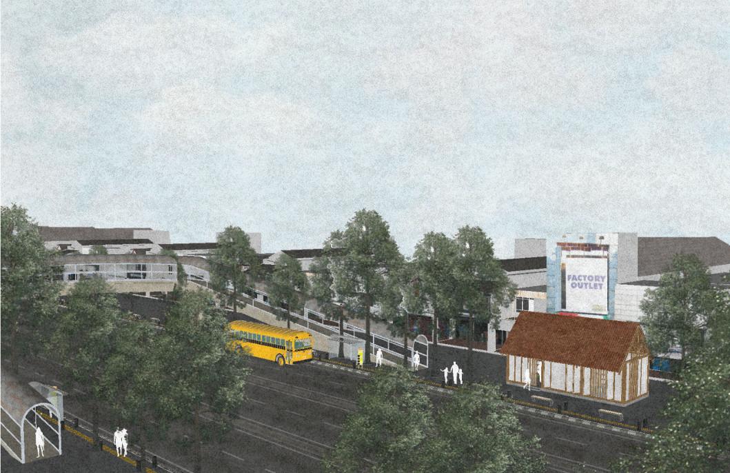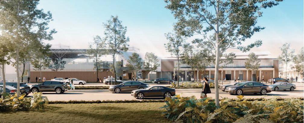 Former existing parking lot added to a new building for tenants, services, and stands.