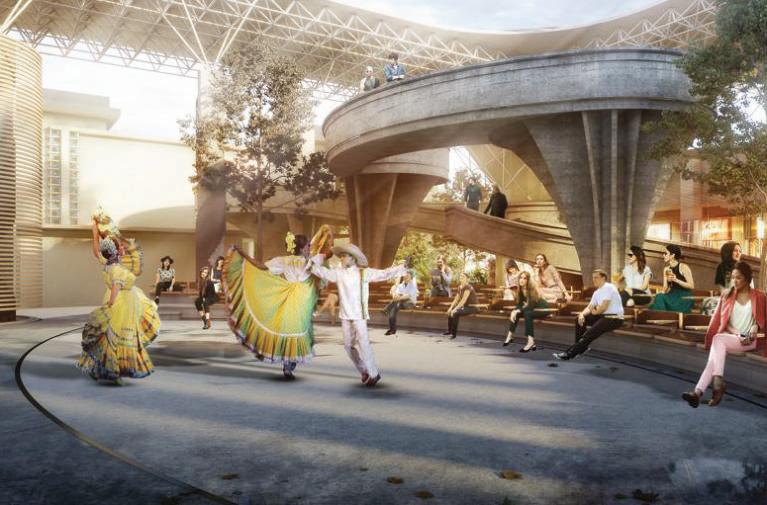 Theatre Art Deco Elements Mirrored Facade Meeting Room Office Desks Existing Theatre Restroom Communal Space Roof Truss Pods Tribune Amphitheatre Tenants Concrete Roof Space Truss Ramps Pods Sightseeing Tribune Glass Facade Food Tenants Art Shop Tenant Restroom Tenants BOH Open Air Theatre Outdoor Stage 35