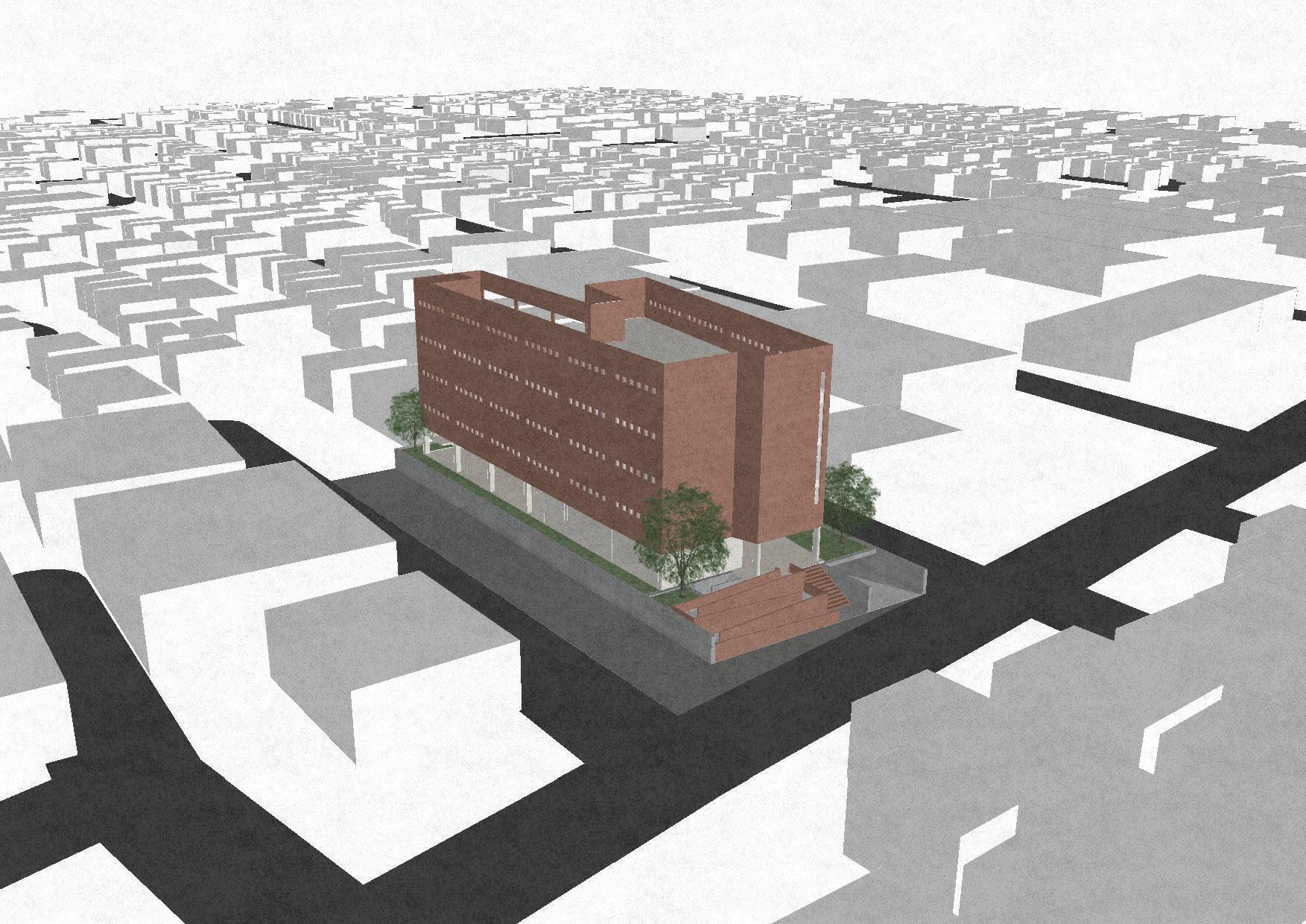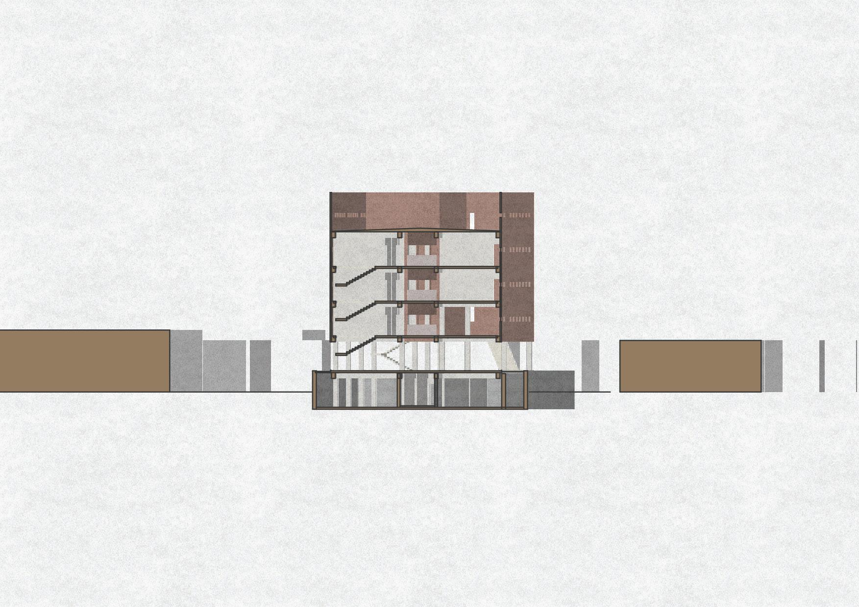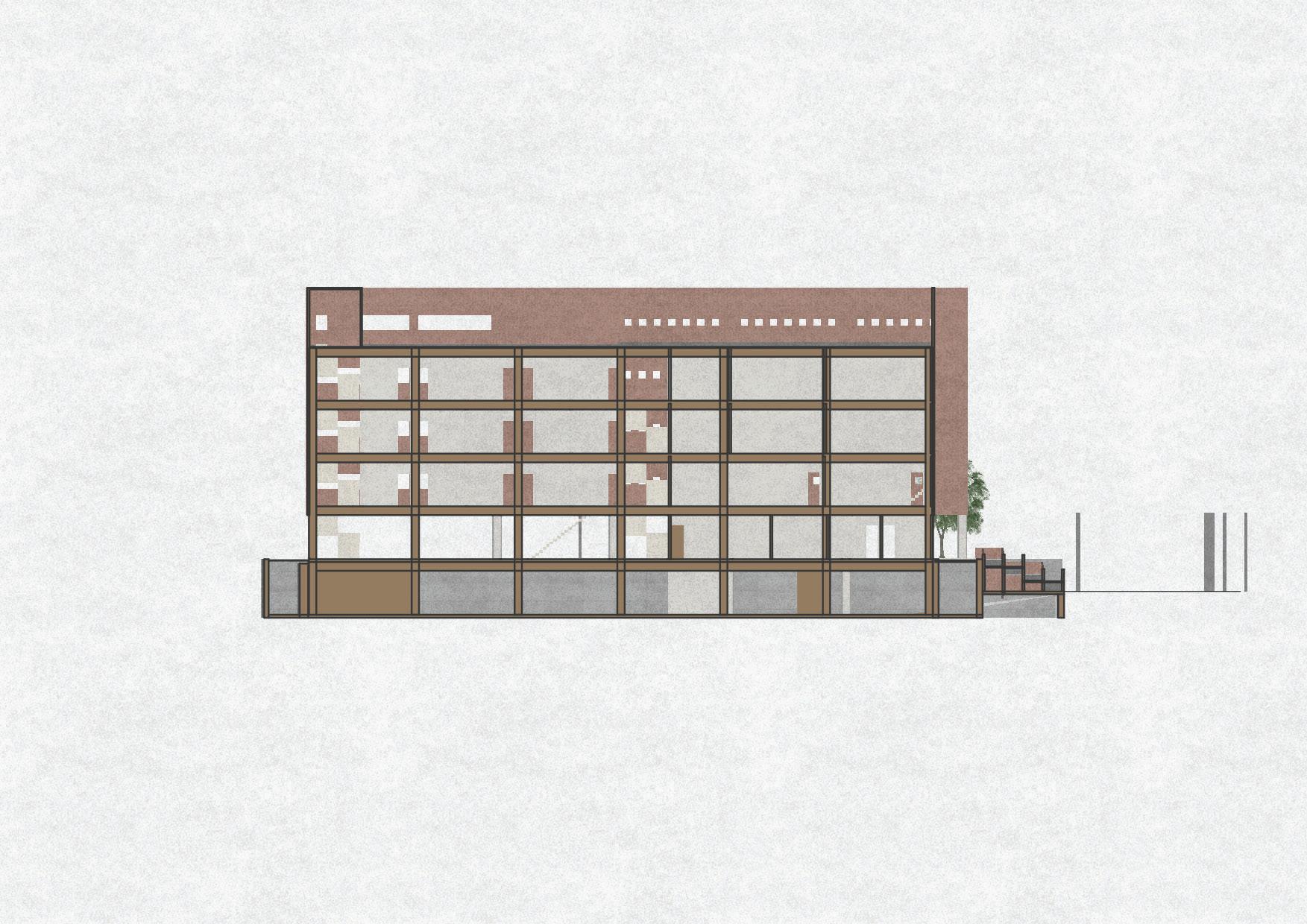 Restore the original facade by creating a mirror facade on the back side with a contextu al juxtaposition approach by transforming into present design context.