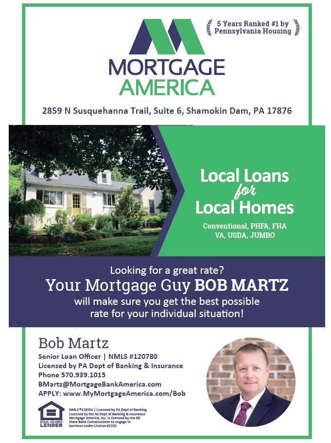 2nd floor laundry. Roof installed 2017. Partially finished basement provides additional living space. 2 car garage with additional detached smaller garage. Electric dog fence. $335,900 mls#20-91014(10G) BE PREPARED TO BE WOWED! From the view, to the kitchen with open floor plan, to the heating sources... this 4BR, 4BA, Millmont home is like none other. Just walk out your front door to Penns Creek. And it is out of the flood zone. Heating gas on demand hystatic mini split system with radiant heat. The additional garage is heated & has it's own bathroom. $545,000 mls#20-92015 UNIQUE BI-LEVEL ON 1.68 ACRES This 4BR, 3BA, home is very nicely done with cathedral ceilings in living & dining rooms. New counter tops & tile for backsplash. New master bath with skylight & soaking tub. Very nicely painted throughout with neutral colors. Rear deck. Very private. Even has a chicken coup with chickens. Some furniture can be purchased. New roof in 2021. $349,000 mls#20-91576 CABIN ON 6 ACRES! NEW PRICE! On this One Bedroom Cabin on 6 Acres. This property is surrounded by State game lands. There is a well on the property. Wired for generator. No Sewer. A hunter's paradise. Check out the unique shower set up! $192,500 mls#20-92072 LEWISBURG RANCH HOME Immaculate ranch which is close to Bucknell campus. Three Bedrooms, 2 baths, large family room, eat-in kitchen with new laminate floor, large deck on the back for entertaining plus a patio with a firepit. Nicely landscaped lot. NEW PRICE! $249,900 mls#20-92007(10G) FRANCHISE ONLY! NO REAL ESTATE Looking for an investment opportunity? Come view this newly renovated sandwich shop Franchise in a great location inside the Coal Township Walmart. All assets (equipment, product, employee roster & lease) will transfer to buyer at settlement, meaning this franchise is completely turn key! One selling member is a Licensed REALTOR. $380,000 mls#20-92291 Land for Sale New Columbia 9.10A on Fort Titzel Rd $50,000 mls#20-91308 Shamokin Dam .22A Lot C22-A Baldwin Blvd $53,000 mls#20-91062 Lewisburg 3 Acres 25 Classic Hills Dr $119,000 mls#20-85483 3 Acres 36 Classic Hills Dr $119,000 mls#20-85484 2.53 Acres in Smoketown Fields $125,000 mls#20-76014