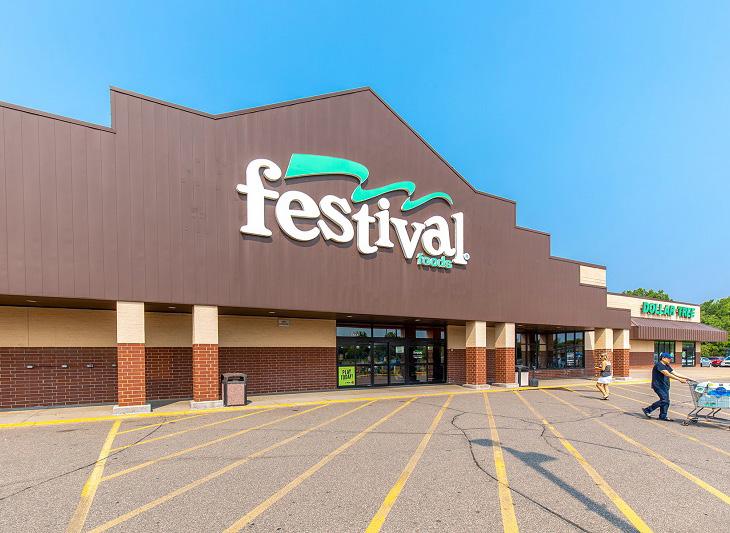 12.20 acres. In addition to Festival Foods, it features a synergistic mix of internet-resistant tenants, including food, service-based, medical, and goods-based retailers such as Dollar Tree, Caribou Coffee, Dairy Queen, Jackson Hewitt Tax Service, Kumon Reading and Math Center, and State Farm Insurance.