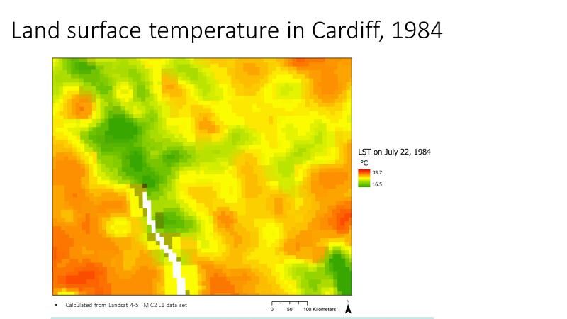 Land surface temperature in Cardiff, 1984