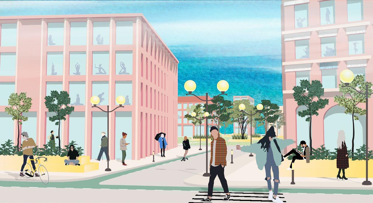 Mixed-use residential living Series of nodes with active frontages