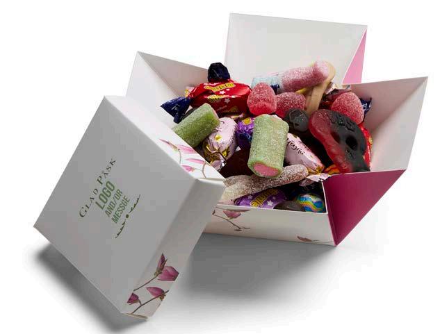 Stilig og stor gaveeske. Trykt sleeve med valgfritt motiv. Fyll med favorittgodteriet. Mål: 20,5X15X9 cm