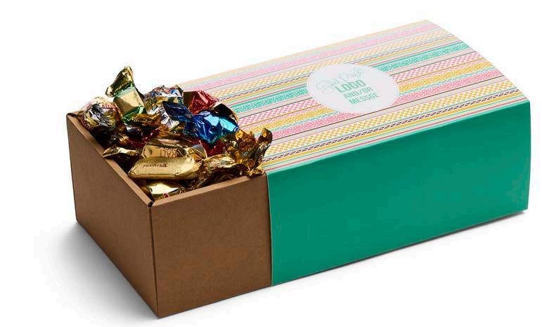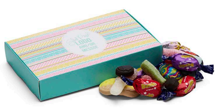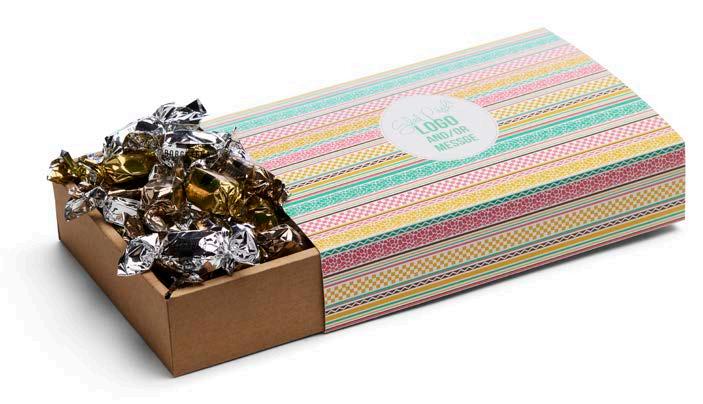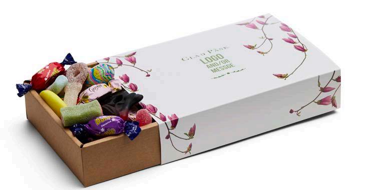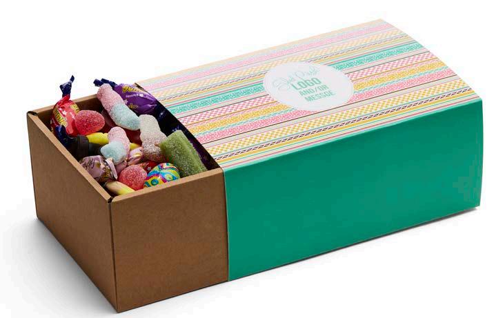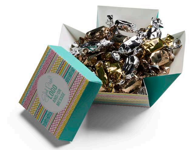 Elegant gaveeske fylt med 500 g valgfritt godteri. Trykt sleeve med valgfri beskjed.