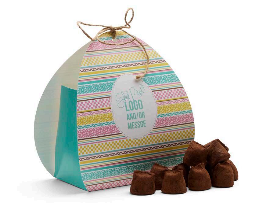 Vakkert egg papir med dekorativ sløyfe. Fylt med ekte svenske trøfler. Velg din smak. Trykk innpakningen med valgfri beskjed.