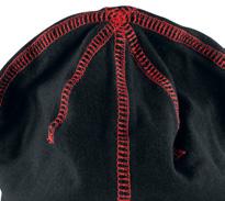 Dubbel single jersey mössa med sex flatlocksömmar i toppen.